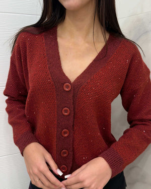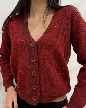 Rote Strickjacke mit Pailletten